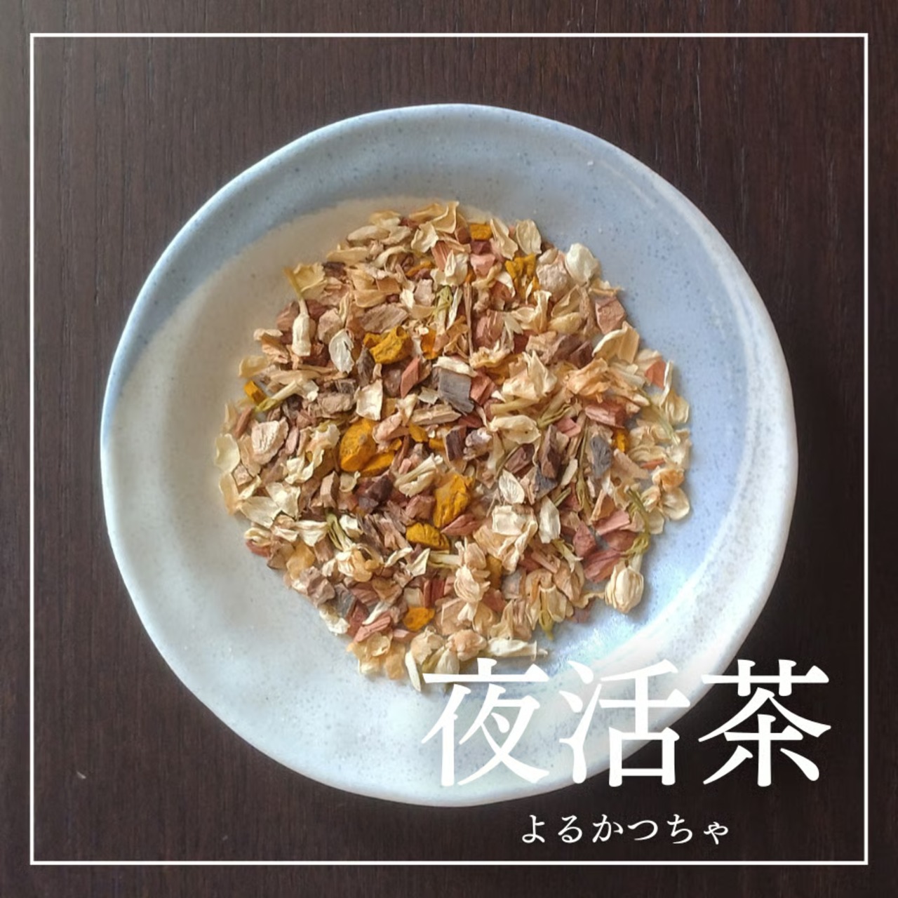 一日の終わりに、リラックス|夜活茶[よるかつちゃ]おすすめの時間帯19時〜1時【心を鎮め、穏やかな眠りへ導く】(漢方ほどよい堂)| 無添加 薬膳・和漢茶